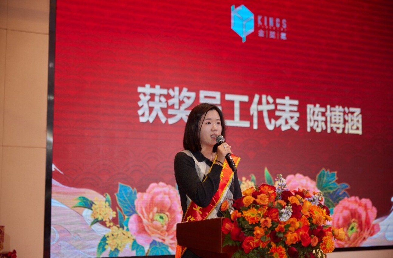 公共事務部陳博涵作為先進個人代表發(fā)言,深感榮幸與感恩,坦言這份榮譽屬于全體金石氟業(yè)人?;仡欉^往,她感謝領導鄧琪煒的悉心指導,也難忘與團隊并肩作戰(zhàn),見證園區(qū)從荒蕪到項目落地投產(chǎn)的蛻變,深刻體會到團隊的強大力量。她表示會將榮譽化為動力,精進業(yè)務、腳踏實地,還愿與同事攜手奮進,共譜公司發(fā)展新篇。